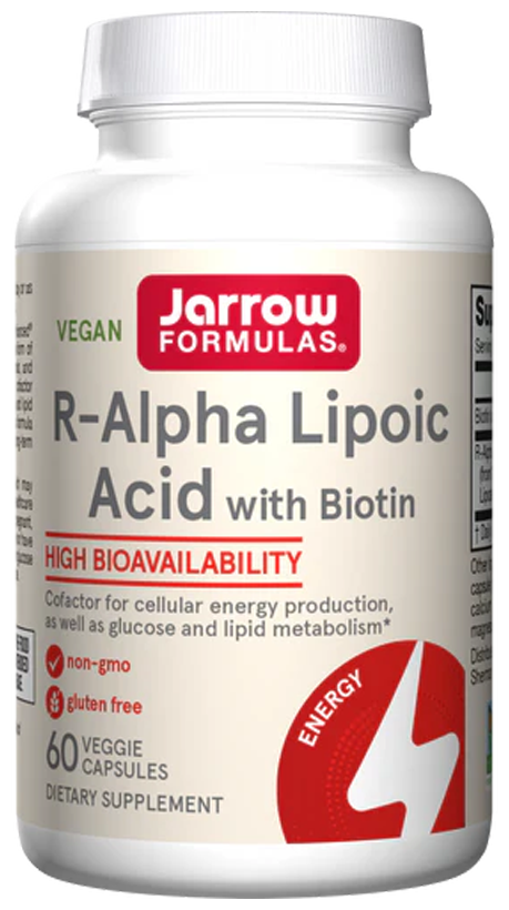 R-альфа-липоевая кислота Jarrow Formulas (Bio-Enhanced Na-RALA) - это высокобиодоступная форма альфа-липоевой кислоты, естественно встречающаяся в растениях, животных и организме человека. RALA выступает как мощный антиоксидант и кофактор в процессах производства клеточной энергии, метаболизма глюкозы и липидов.