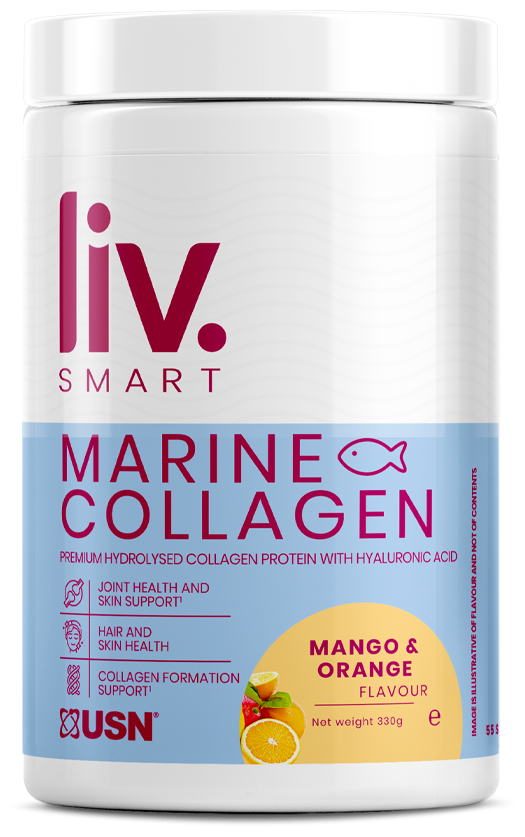 Морской коллаген Marine Collagen LivSmart от USN - это пищевая добавка на основе гидролизованных пептидов морского коллагена, обогащённая гиалуроновой кислотой и витамином C. Коллаген, получаемый из рыбы, укрепляет кожу, суставы, волосы и ногти, обеспечивая их эластичность и прочность. Гиалуроновая кислота увлажняет кожу, сохраняя её упругость, а витамин C стимулирует синтез коллагена и защищает клетки от свободных радикалов. Регулярный приём способствует поддержанию молодости и общего здоровья.
