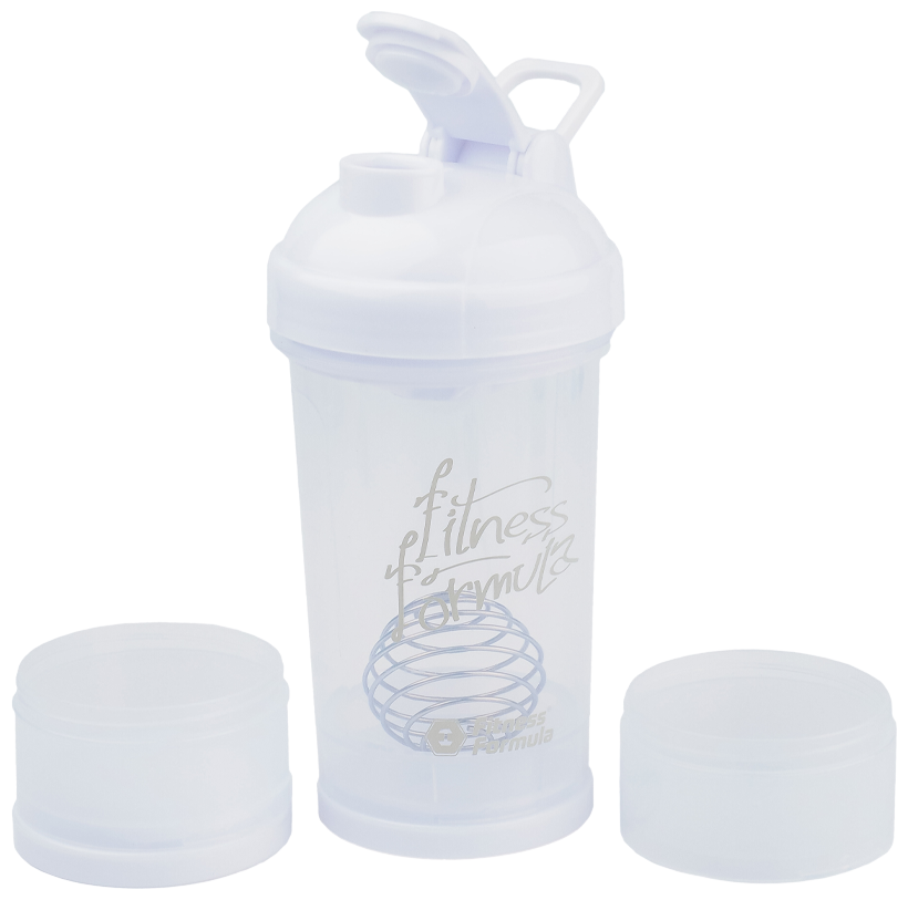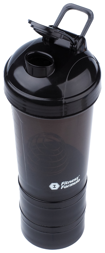 Fitness Formula Шейкер с двумя независимыми контейнерами объемом 500 мл представляет собой удобное и практичное средство для приготовления и транспортировки спортивных напитков и добавок.