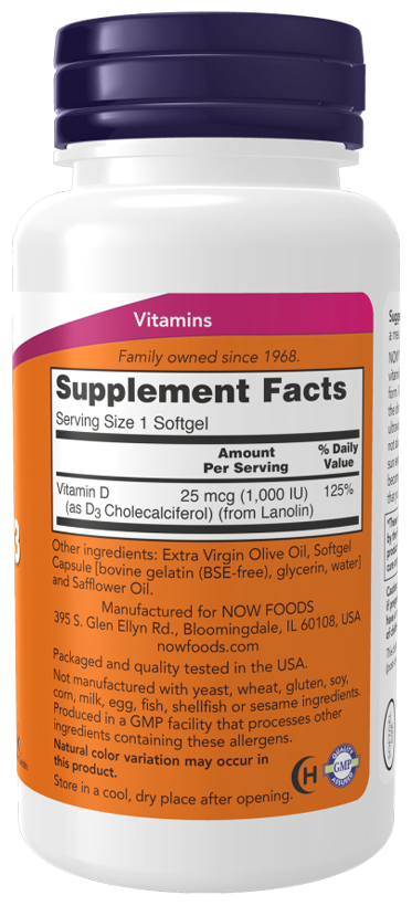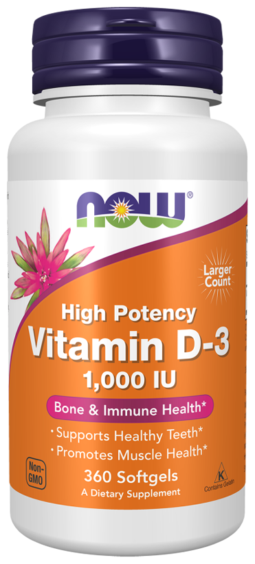 NOW High Potency Vitamin D-3 1000 IU, Высокоэффективный витамин Д-3 1000 МЕ, 360 капсул