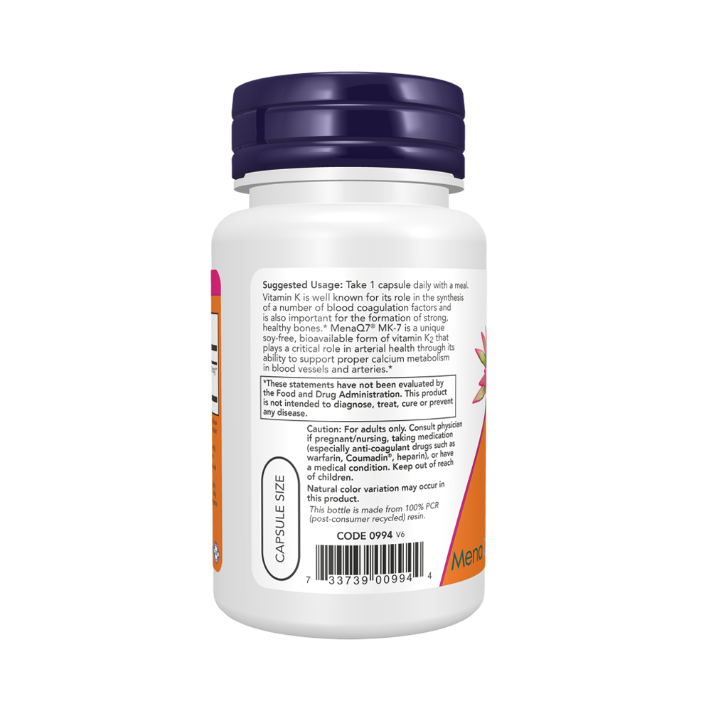 MK-7 Vitamin K-2 - это биодоступная и безопасная добавка для ежедневного укрепления здоровья. В ее основу положена легкоусвояемая форма витамина K2, запатентованная под названием MenaQ7. Она эффективней большинства аналогов, быстрее и полноценнее метаболизируется организмом. Благодаря этому, вы получаете еще больше пользы из каждой порции, не опасаясь побочных эффектов.